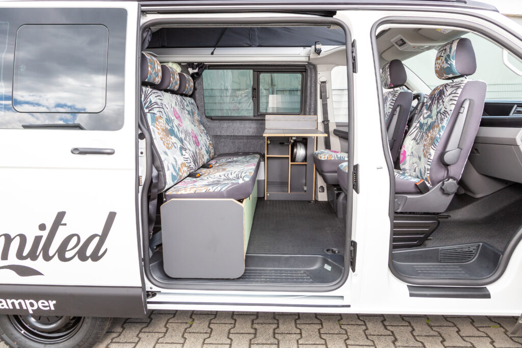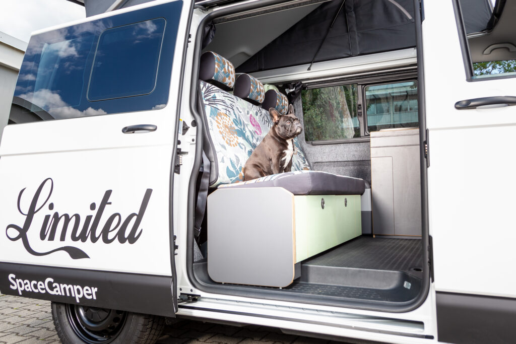 Het multifunctionele interieur van een SpaceCamper biedt verschillende toepassingen. Het grootste pluspunt is de zelf ontworpen, volledig laadbare achterbank die door 1 persoon is te tillen. Hij weegt slechts een fractie van de originele VW-bank en voldoet nog steeds aan alle veiligheidseisen. De door octrooi beschermde constructie is door de TÜV getest op crashveiligheid.
