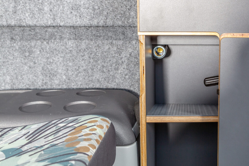 In ons eigen timmer afdeling, stoffeerderij en expertise in metaalbouw, elektra kunnen we maatwerk leveren , en op deze wijze u een hoogwaardige uitrusting garanderen. 40 medewerkers zijn betrokken in het fabrieksteam in Darmstadt. Omdat de achterbank extreem licht is, hebben we de mogelijkheid om de betere kwaliteit berken plexoplaten samen met roestvrij staal en aluminium te gebruiken in plaats van plastic. Dit maakt het interieur bijzonder gezellig en duurzaam. In tegenstelling tot normaal multiplex wordt Birkoplex gemaakt van fijne lagen geschild fineer, die onder hoge druk worden geperst met watervaste lijm. Dit zorgt voor een uitstekende stijfheid-gewichtsverhouding en maakt het hout waterafstotend en maatvast. Birkoplex wordt ook gebruikt in de jachtbouw. We gebruiken Formica-laminaat voor de oppervlakken van onze meubels, die ook worden gebruikt voor keukenwerkbladen. Het is bijzonder krasvast en bestand tegen hitte (tot 185 ° C) en chemicaliën. Deze coating beschermt naast het keukenelement ook de gehele zijbekleding van de kofferbak.